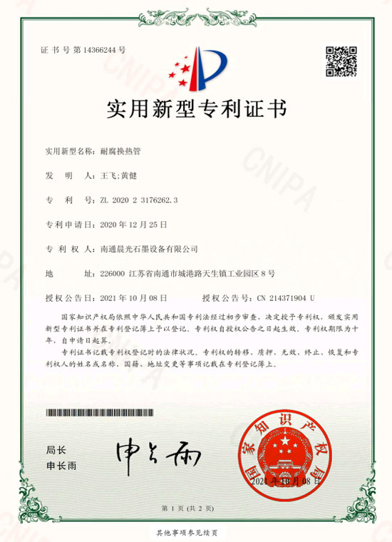 實(shí)用新型專(zhuān)利 :耐腐換熱管 專(zhuān)利號(hào):ZL 2020 2 3176262.3