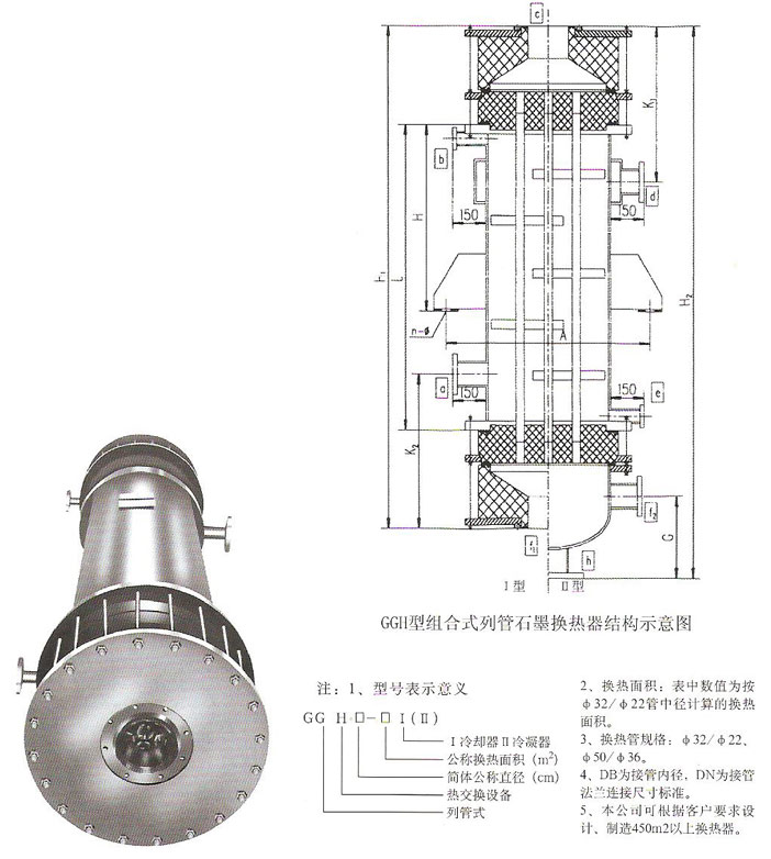 為解決浮頭列管式石墨換熱器許用溫度較低,尤其作加熱時不夠理想的問題,我公司生產的新型列管換熱器采用單管填料密封,單管填料密封是對每一根石墨管各自獨立的進行密封,使其能獨立熱脹冷縮。適合用于加熱器、蒸發(fā)器(升膜、降膜蒸發(fā)),并可承受一定的急冷急熱。還可根據用戶要求或工藝條件設計制造兩頭均為填料密封的結構。如石墨管有損壞,可在現場任意更換。