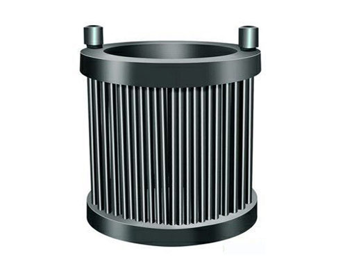 鼠籠式石墨熱器的結(jié)構(gòu)是由上下蓋板,上、下管板、石墨管、折流板等零部件膠結(jié)而成 (參見圖),一般安裝于反應(yīng)罐、貯槽中,上管板四周與反應(yīng)器內(nèi)壁用四氟板或石墨塊卡緊,以避免晃動(dòng)及與容器相撞擊,管內(nèi)流通腐蝕性或非腐蝕性載體,如冷凍鹽水或飽和水蒸汽、結(jié)垢輕微,管外與腐蝕性母液接觸,容易清洗,管子可以選用Φ32/Φ22、Φ50/Φ36兩種、內(nèi)部采用折流板,提高傳熱效率,管子排列可分為一排、兩排、三排。具體可按用戶需要設(shè)計(jì)規(guī)格。